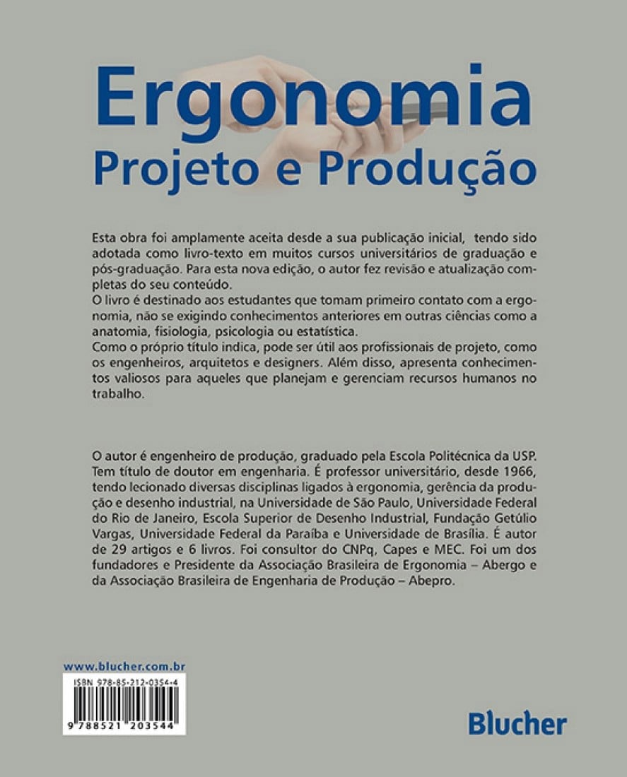 O autor é engenheiro de produção, formado pela Escola Politécnica da Universidade de São Paulo, em 1965, onde realizou também o curso de doutorado, defendendo tese sobre A Ergonomia do Manejo. Foi professor universitário, lecionando diversas disciplinas ligadas à ergonomia e gerência da produção na Universidade de São Paulo, Universidade Federal do Rio de Janeiro, Escola Superior de Desenho Industrial, Fundação Getúlio Vargas, Universidade Federal da Paraíba e outros. Realizou diversos trabalhos de pesquisa e de consultoria em empresas. Publicou os seguintes livros: Aplicação da Engenharia de Produção, Ergonomia (em co-autoria com Henri A. J. Wierzbicki), Aspectos Ergonômicos do Ônibus Urbano [coordenador), e Pequena e Média Empresa no Japão. Foi um dos fundadores e Presidente da Associação Brasileira de Ergonomia - Abergo - e da Associação Brasileira de Engenharia de Produção - Abepro.