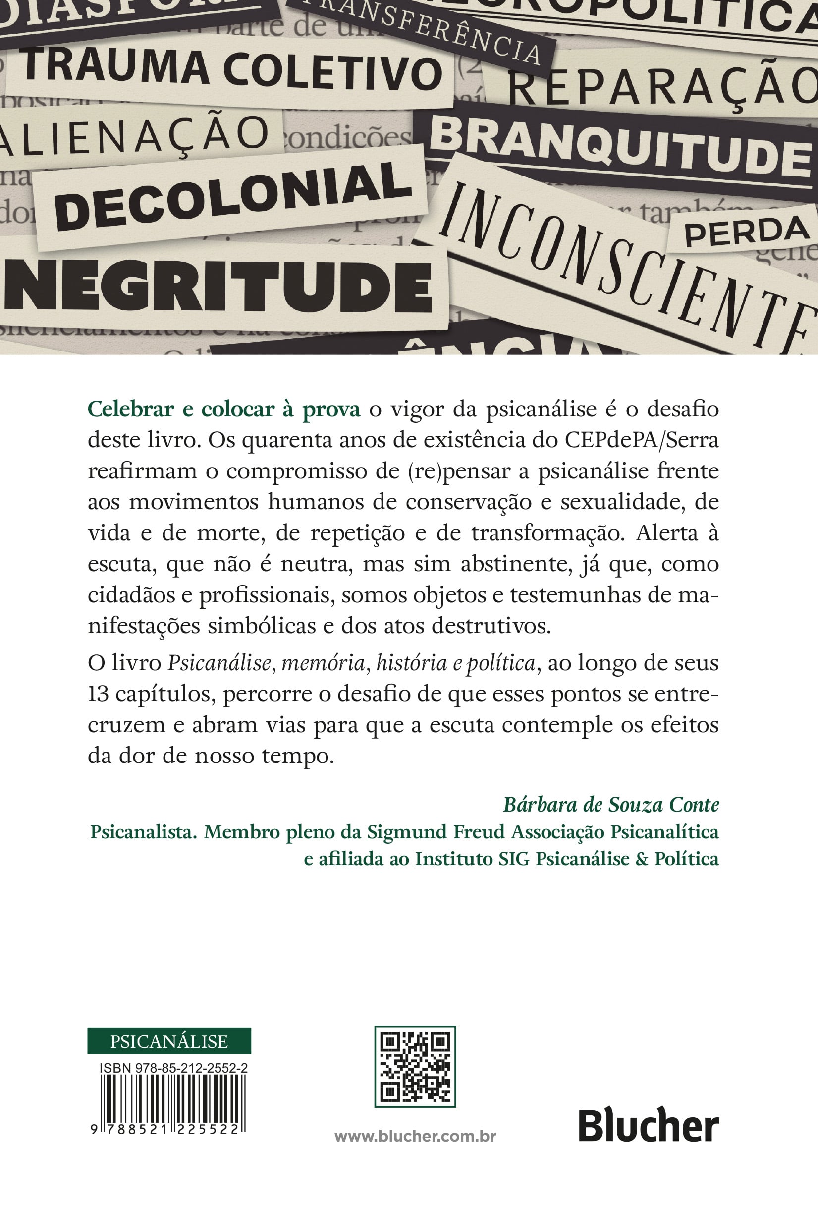 O livro Psicanálise, memória, história e política, ao longo de seus 13 capítulos, percorre o desafio de que esses três pontos se entrecruzem e abram vias para que a escuta contemple os efeitos da dor de nosso tempo.