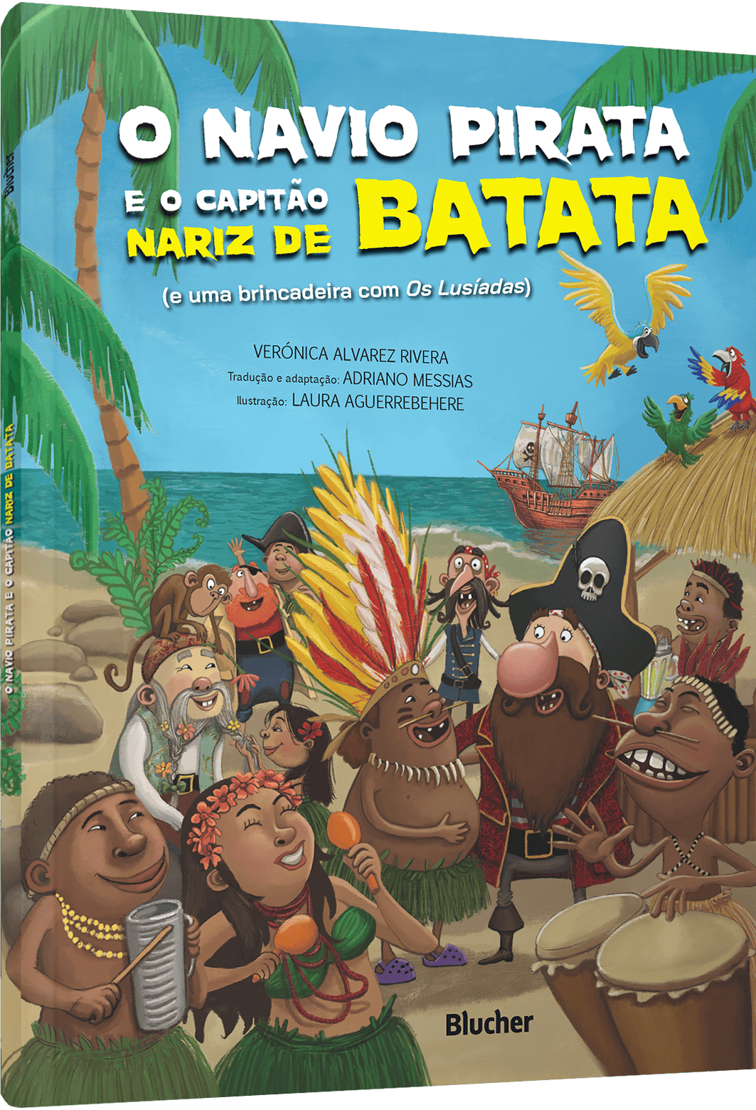 A obra que você tem em mãos é fruto da mente criativa de três artistas: a escritora Verónica Alvarez Rivera criou o texto original, a ilustradora Laura Aguerrebehere deu vida à narrativa por meio de imagens e o escritor Adriano Messias traduziu e depois adaptou o texto argentino ao universo brasileiro, percebendo uma possível interlocução com a obra portuguesa Os Lusíadas, de Camões. Afinal, o pirata capitão Nariz de Batata, obcecado por aventuras e tesouros, fará uma viagem insólita pelos mares, ainda que a contragosto de seus marujos, e irá se deparar com sua musa tropical.