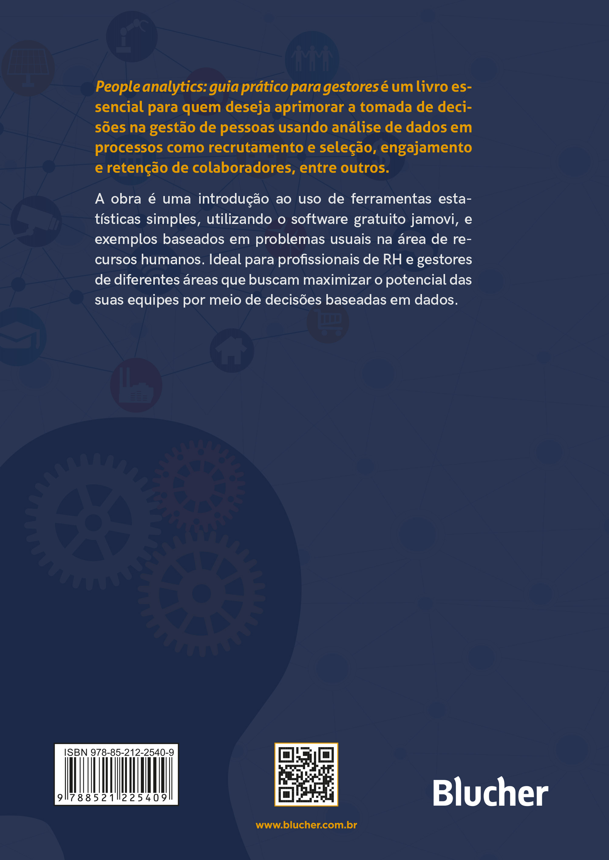 Este livro é uma introdução ao uso de ferramentas estatísticas simples, utilizando o software jamovi, gratuito, e exemplos baseados em problemas usuais em RH. Ideal para profissionais de RH e gestores de diferentes áreas que buscam maximizar o potencial das suas equipes através de decisões baseadas em dados.