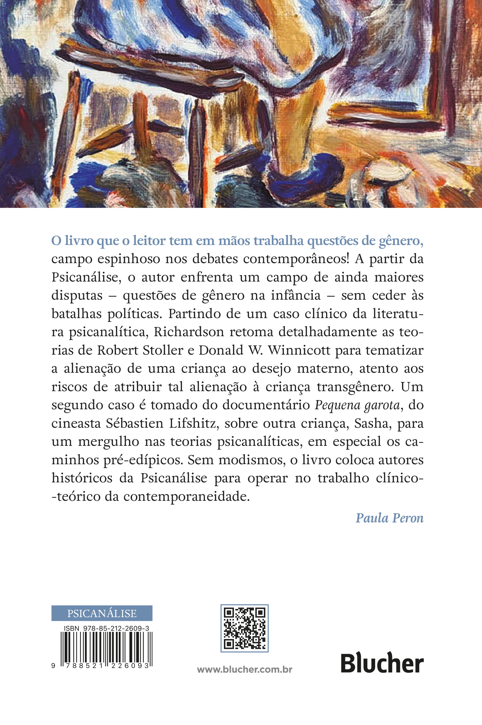 O livro que o leitor tem em mãos trabalha questões de gênero, campo espinhoso nos debates contemporâneos! A partir da Psicanálise, o autor enfrenta um campo de ainda maiores disputas – questões de gênero na infância – sem ceder às batalhas políticas. Partindo de um caso clínico da literatura psicanalítica, Richardson retoma detalhadamente as teorias de Robert Stoller e Donald W. Winnicott para tematizar a alienação de uma criança ao desejo materno, atento aos riscos de atribuir tal alienação à criança transgênero. Um segundo caso é tomado do documentário Pequena garota, do cineasta Sébastien Lifshitz, sobre outra criança, Sasha, para um mergulho nas teorias psicanalíticas, em especial os caminhos pré-edípicos. Sem modismos, o livro coloca autores históricos da Psicanálise para operar no trabalho clínico-teórico da contemporaneidade.