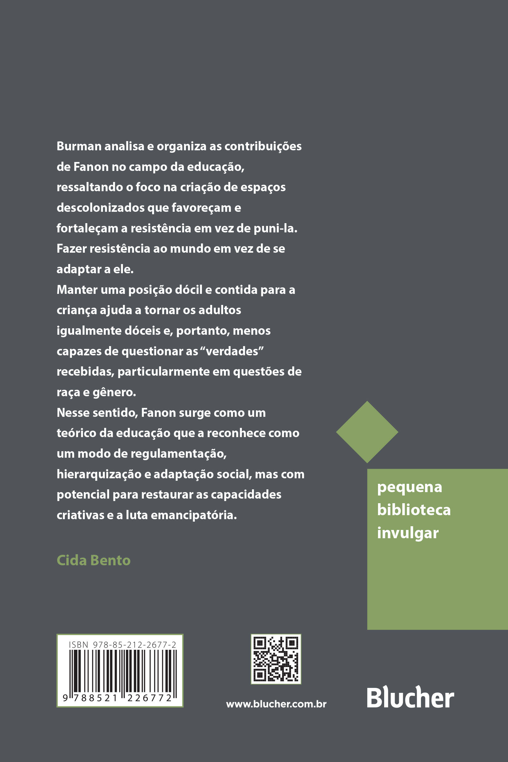 Burman analisa e organiza as contribuições de Fanon no campo da educação, ressaltando o foco na criação de espaços descolonizados que favoreçam e fortaleçam a resistência em vez de puni-la. Fazer resistência ao mundo em vez de se adaptar a ele.