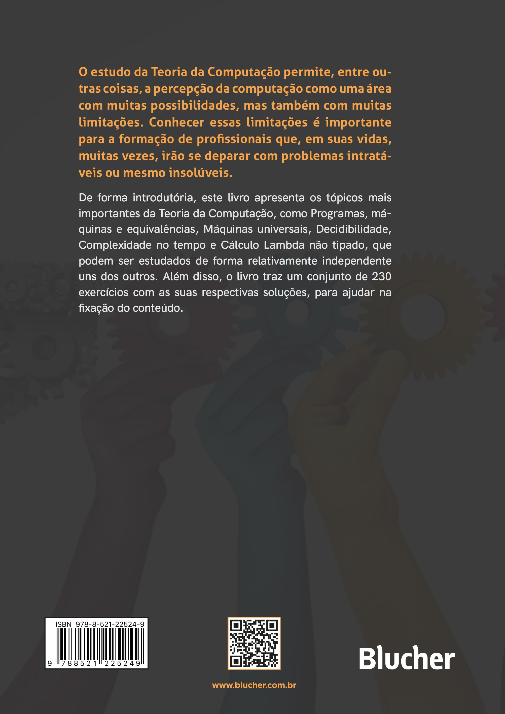 De forma introdutória, este livro apresenta os tópicos mais importantes da Teoria da Computação, como Programas, máquinas e equivalências, Máquinas universais, Decidibilidade, Complexidade no tempo e Cálculo Lambda não tipado, que podem ser estudados de forma relativamente independente uns dos outros. Além disso, o livro traz um conjunto de 230exercícios com as suas respectivas soluções, para ajudar na fixação do conteúdo.