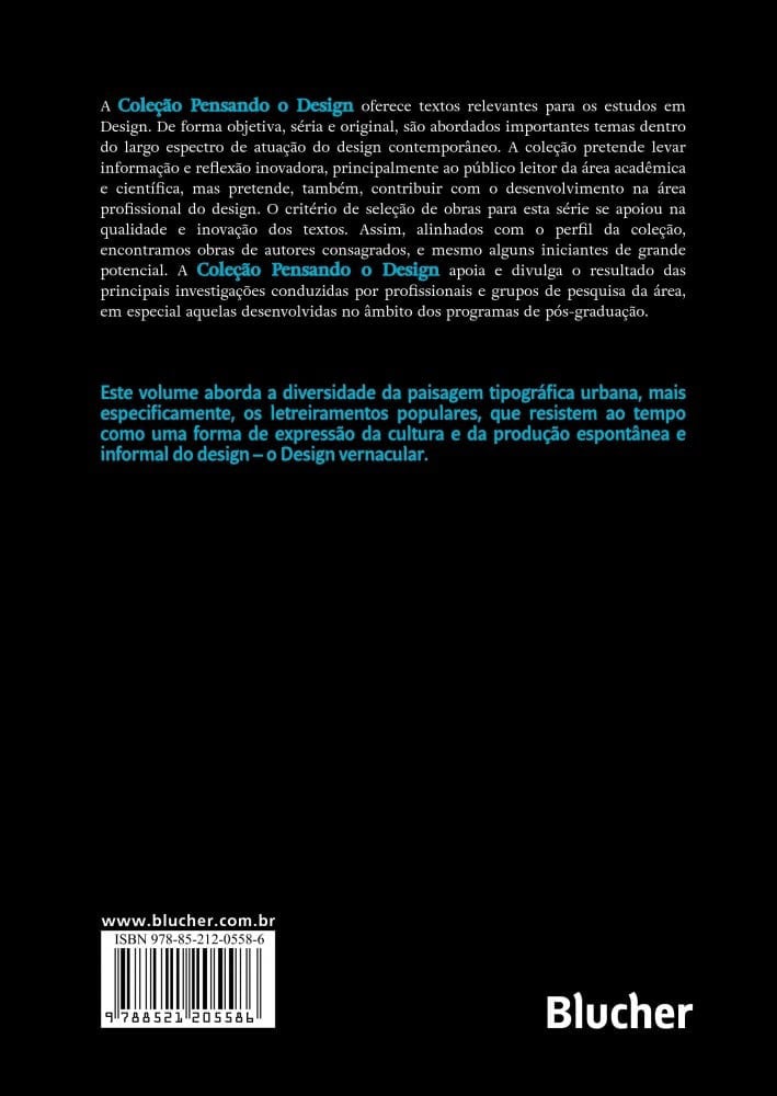 Este volume aborda a diversidade da paisagem tipográfica urbana, mais especificamente, os letreiramentos populares, que resistem ao tempo como uma forma de expressão da cultura e da produção espontânea e informal do design - o Design vernacular.